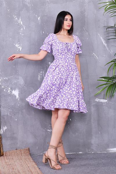 Beli Gipeli Çiçekli Elbise (4Y-ELB0112-MOR)
