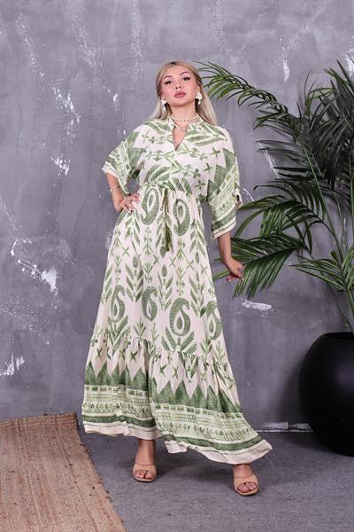 Hakim Yaka Beli Lastikli Pamuklu Elbise (4Y-ELB0118-YŞL)