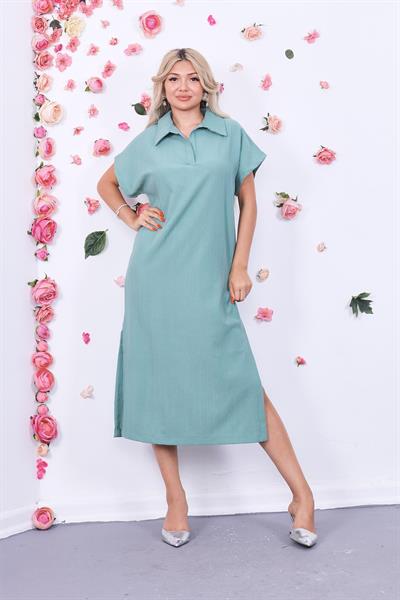 Polo Yaka Yırtmaçlı Elbise (4Y-ELB0160-MNT)