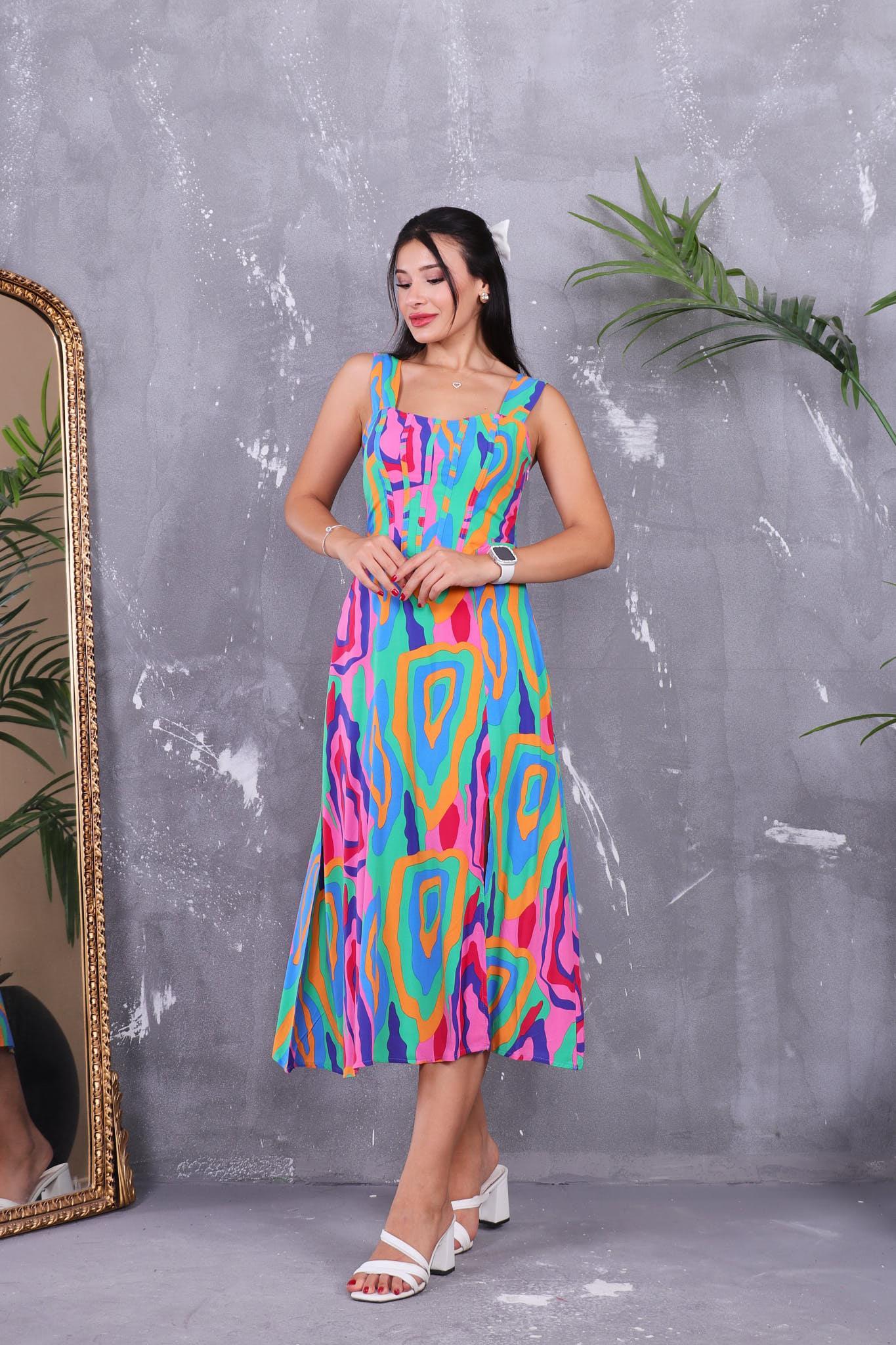 Yakası Balenli Kalın Askılı Elbise Yakası Balenli Kalın Askılı Elbise